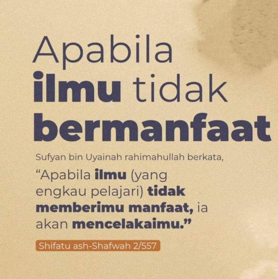 • Ilmu yang tidak menghasilkan petunjuk dan cahaya hanyalah musibah dan tipuan. Dan setiap yang menyebabkan terputusnya hamba dari Allah adalah kejahilan dan kesesatan.